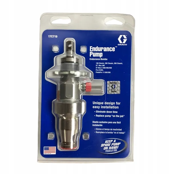 Pompa ta wyposażona jest w długie zbiorniki V-Max i drążek Chromex, co zapewnia wysoką trwałość i niezawodność. Jest kompatybilna z modelami Graco 390, 395, 490, 495 i 595 z lat 2003-2014, w tym Ultra-Max 695, LineLazer 3400, Ultra-Max II 490, 495 oraz 595.