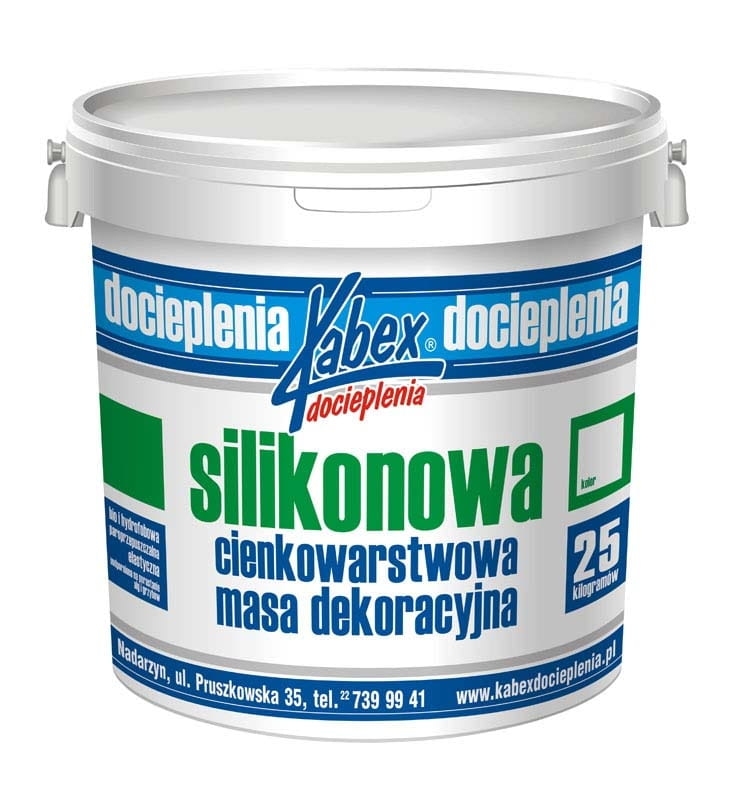 Silikonowa, cienkowarstwowa masa dekoracyjna, stanowiąca element zestawu wyrobów do wykonywania ociepleń budynków systemem KabexTerm S zgodnie z certyfikatem nr Z866.
