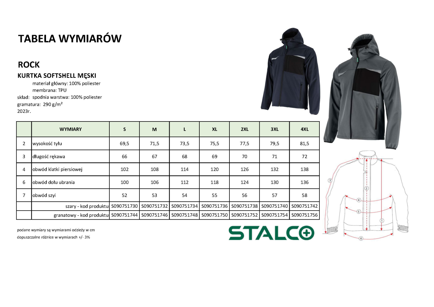 Softshell z kapturem ROCK marki STALCO oferowany jest w siedmiu rozmiarach. W ramach każdego z nich można wyregulować kurtkę i dopasować ją do indywidualnych rozmiarów, a także poprawić komfort termiczny. Regulacja w pasie, za pomocą gumki ze stoperami, w połączeniu z wydłużonym tyłem, zapobiegają podwiewaniu wiatru. Profilowany kaptur również jest regulowany za pomocą gumki ze stoperami. W rękawach zastosowano elastyczne gumki, które dopasowują rękaw do nadgarstka, a same rękawy tak wyprofilowane, aby dać swobodę w czasie wykonywania prac.