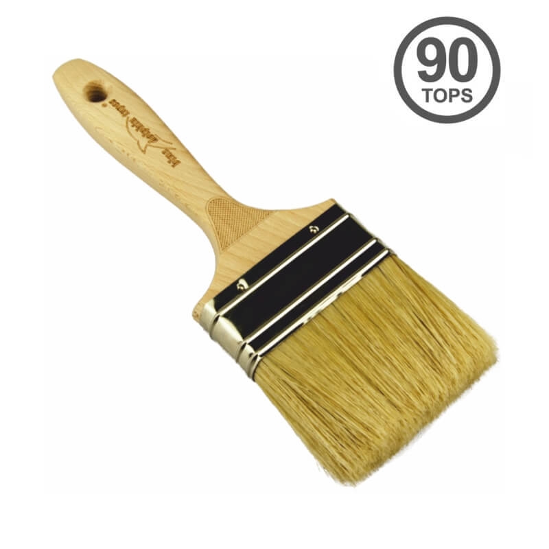 Szczecina naturalna i włókna x-shape; trzonek bukowy, szlifowany; skuwka niklowana. Zalecany do wszystkich rodzajów farb i lakierów.